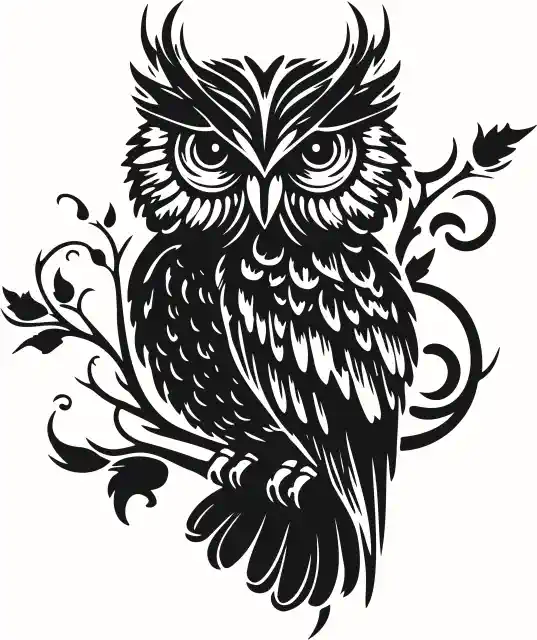Dzīvnieku uzlīme “Melnbalts stilizētas pūces zīmējums 2”