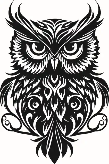 Dzīvnieku uzlīme “Melnbalts stilizētas pūces zīmējums 7”