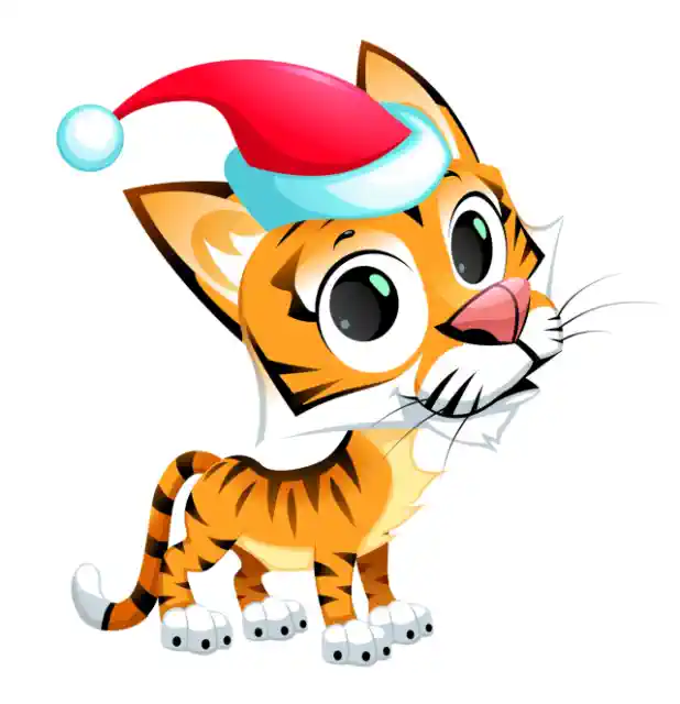 Dzīvnieku uzlīme “Tīģerēns ar Ziemassvētku cepuri galvā, lielām acīm”