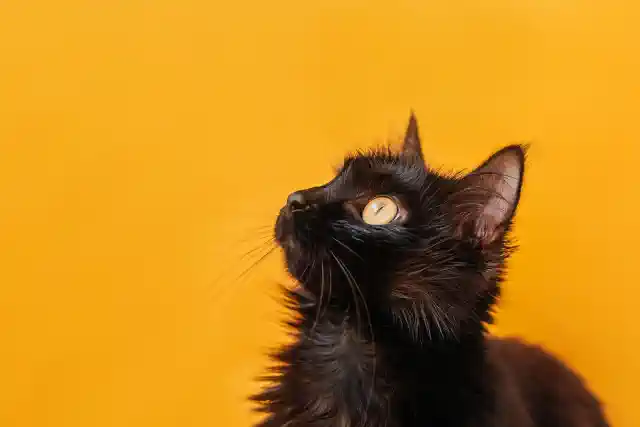 Kaķu uzlīme “Melna kaķa portrets no sāniem uz dzeltena fona”