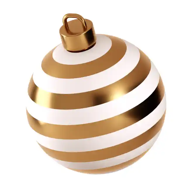 Ziemassvētku uzlīme “Eglīšu mantiņa – bumba ar spīdīgām, zeltainām un baltām svītrām”