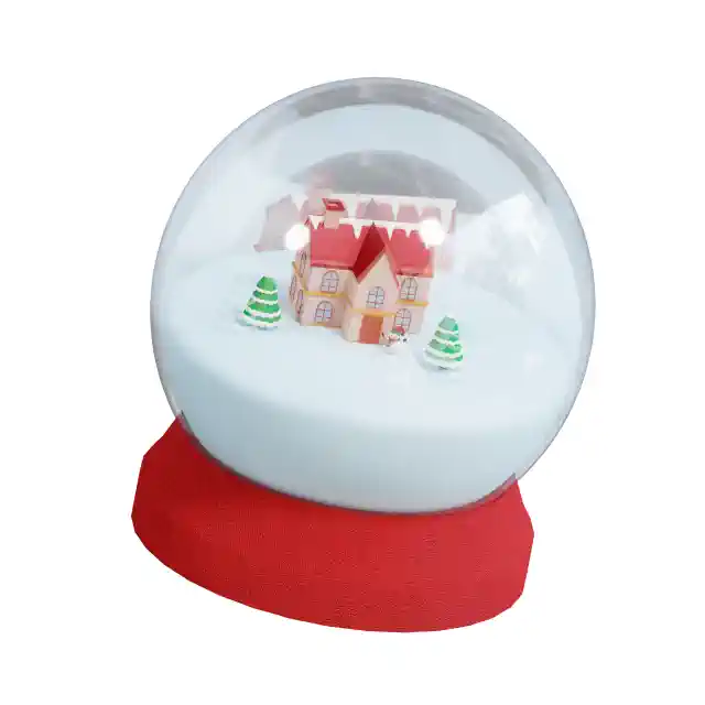 Ziemassvētku uzlīme “Māja un sniegs stikla bumbā ar sarkanu pamatni”