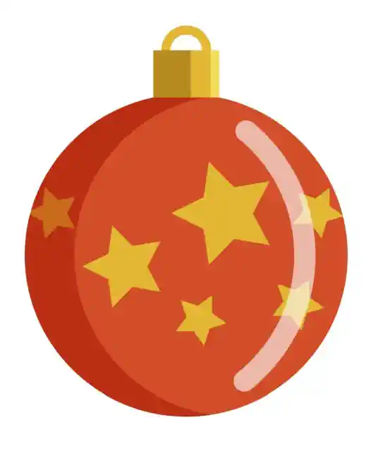 Ziemassvētku uzlīme “Padomjlaika eglīšu mantiņa – sarkana bumba ar dzeltenām zvaigznītēm”